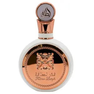 Descrição Olfativa Provável: Fakhar Gold abre com uma fusão vibrante e ligeiramente especiada, com um toque frutado e a profundidade sutil do oud. No coração, revela um buquê floral elegante entrelaçado com a cremosidade do sândalo e o toque exótico do açafrão. A base é uma celebração de calor e doçura, com a rica baunilha, âmbar envolvente, fava tonka e um persistente e sedutor rastro de almíscar e oud.