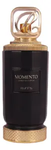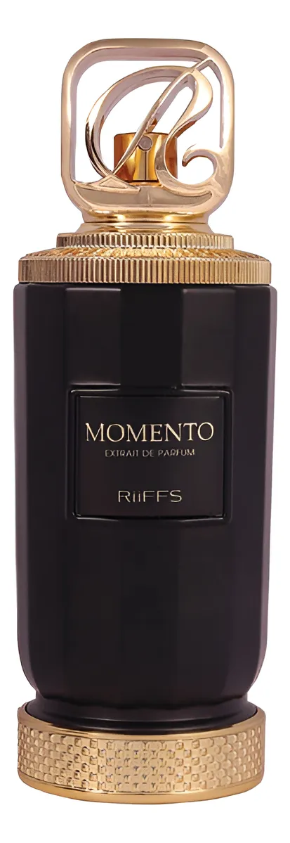 A embalagem de Momento Riiffs reflete a sofisticação da fragrância que contém. Geralmente apresenta um design elegante e robusto, com tons sóbrios, detalhes em dourado ou prateado e texturas que evocam luxo e exclusividade, protegendo o frasco de forma primorosa e convidativa.