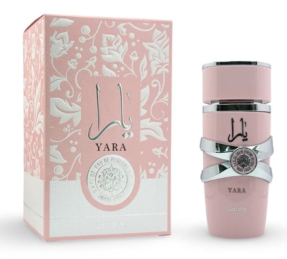 Yara by Lattafa é um Eau de Parfum feminino caracterizado por uma fusão de notas frutadas tropicais, acordes gourmand e uma base quente de baunilha e almíscar. Destaca-se pela sua performance duradoura e pela fragrância sedutora e aconchegante. O design do frasco é elegantemente feminino, em tons de rosa com detalhes dourados.